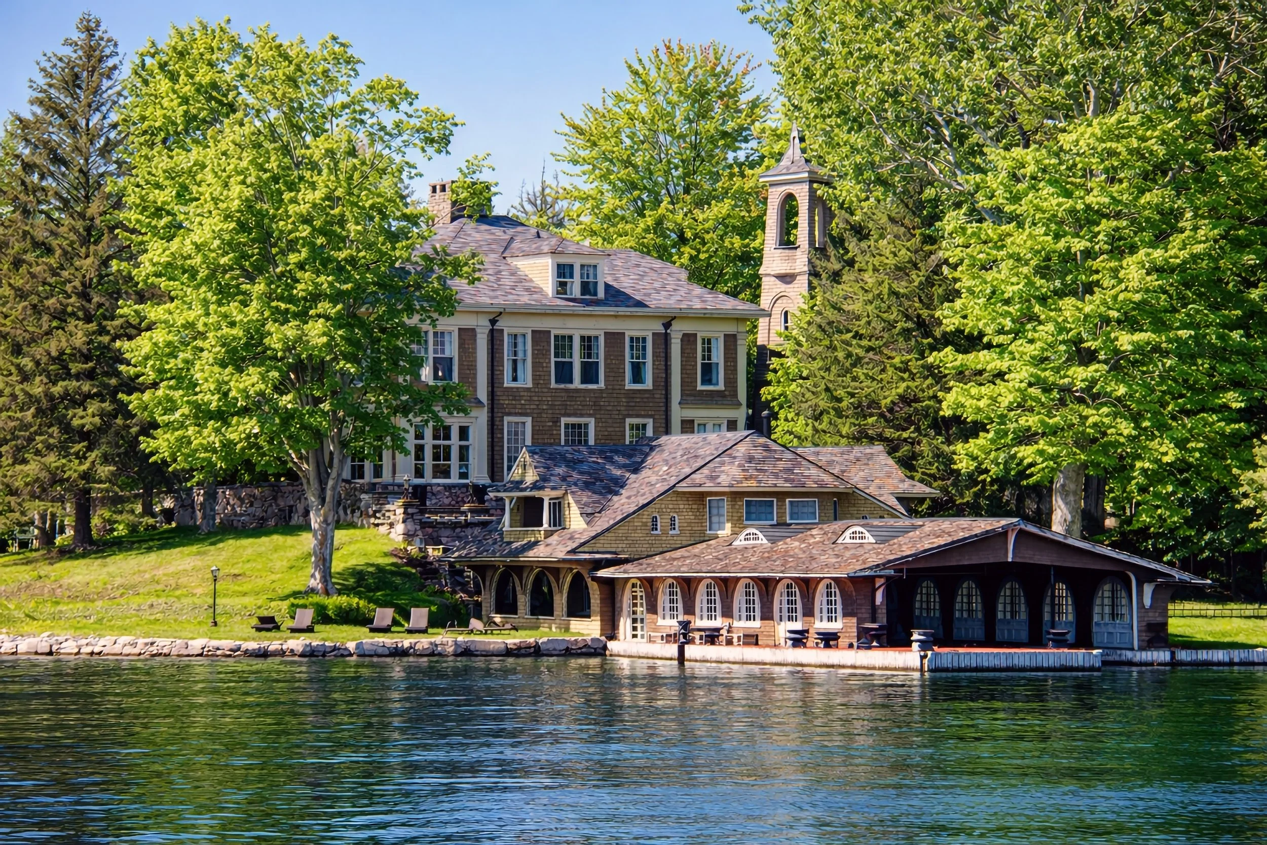 Comfort Island was among the many islands that became home to these remarkable estates. Built during a time when craftsmanship, architectural beauty, and waterfront living were celebrated, these homes were designed for summer gatherings, entertaining guests, and enjoying the natural beauty of the St. Lawrence River.